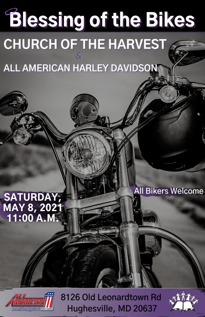 Inviting all bikers to join us at All American Harley Davidson in Hughesville, MD on Saturday, May 8th at 11 AM for prayers of safety, joy, and smiles.